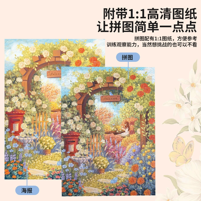 "Spring Garden" captures the vibrant essence of nature's rebirth. Piece by piece, you'll reveal a lush garden bursting with colorful blooms, fresh greenery, and the gentle warmth of springtime. From delicate blossoms to buzzing bees, this puzzle transports you to a serene haven where every detail celebrates the joy and renewal of the season. Perfect for nature lovers and puzzle enthusiasts, "Spring Garden" is a delightful way to bring the beauty of spring into your home.