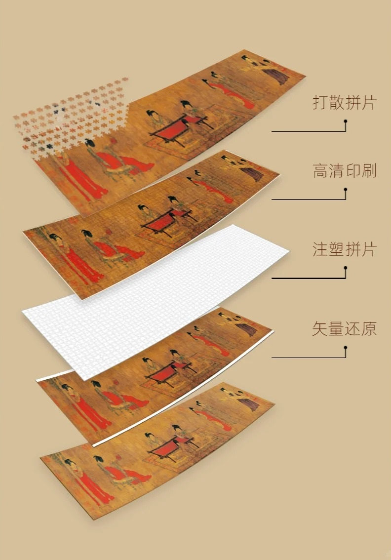 "Court Ladies Waving Fans" puzzle showcases the elegance and poise of ancient courtly life. Piece by piece, uncover a graceful scene of refined ladies delicately waving fans, surrounded by intricate details and a serene atmosphere. Perfect for those who love classical art, cultural heritage, and timeless beauty.