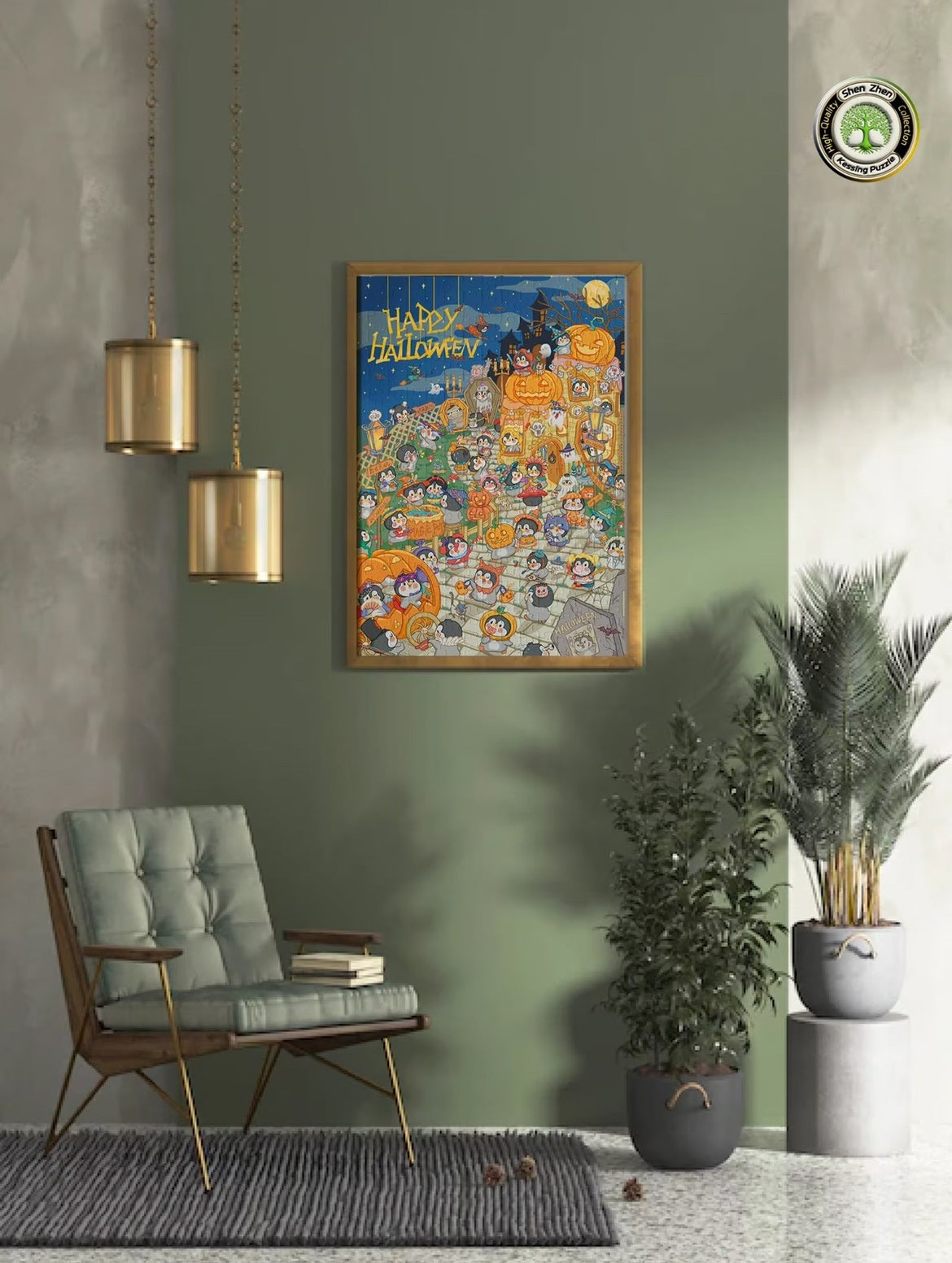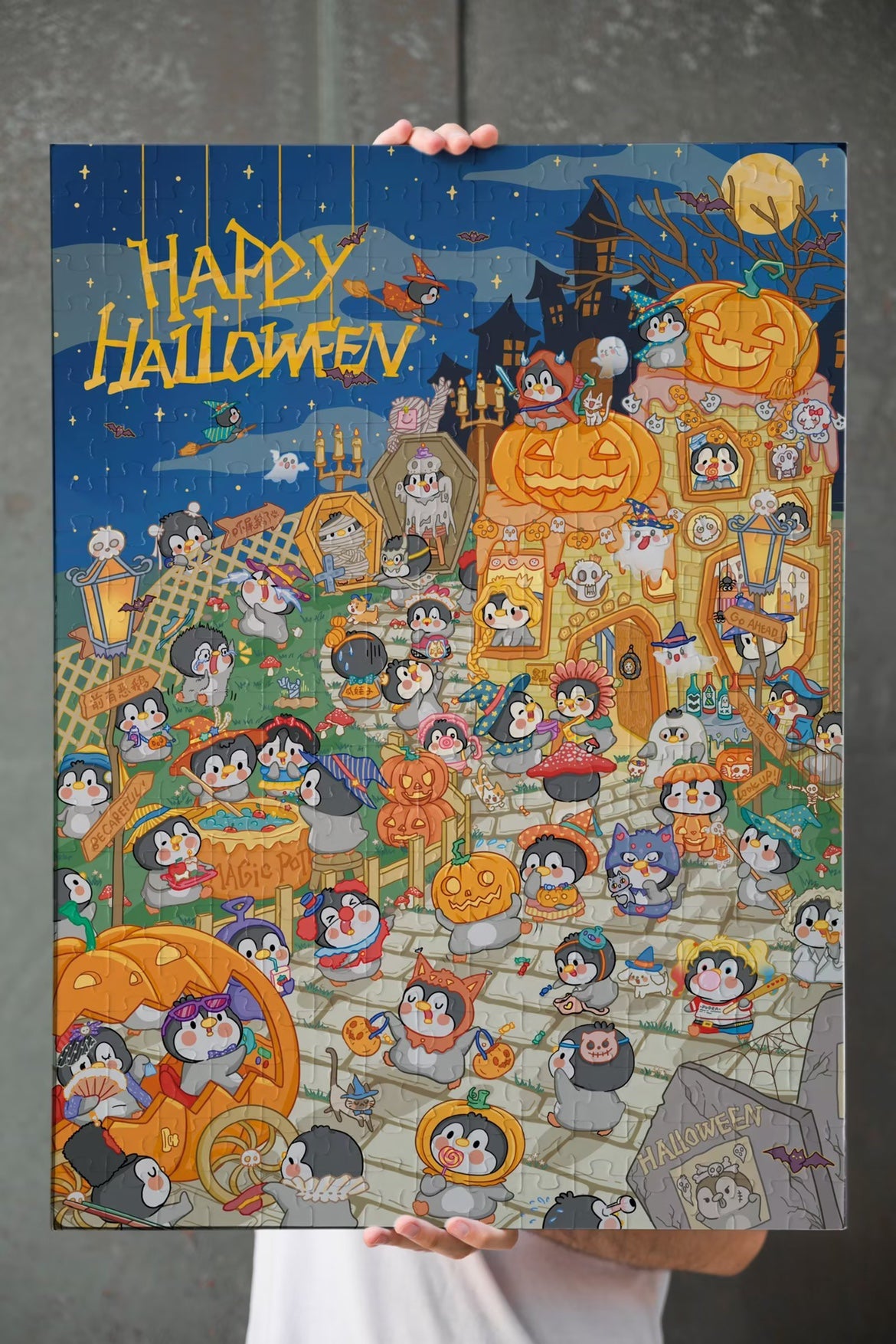 "Happy Halloween" puzzle brings the festive fun of Halloween to life. Piece by piece, reveal a spooky yet cheerful scene filled with carved pumpkins, playful ghosts, and festive decorations under a moonlit sky. Perfect for those who love the excitement and whimsy of Halloween celebrations!