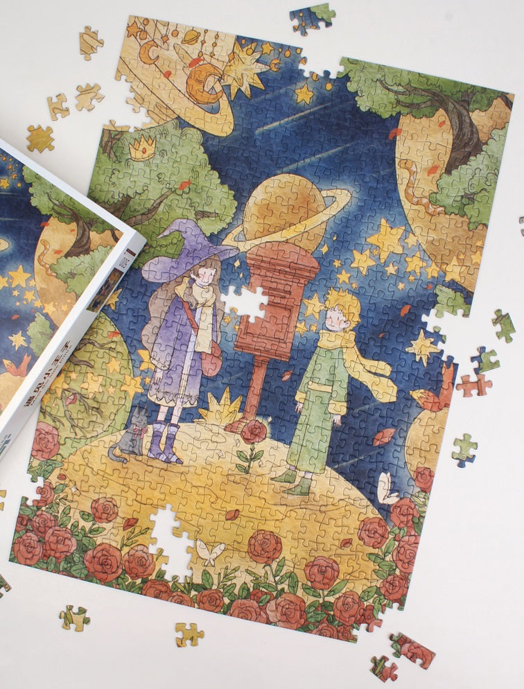"Meet the Little Prince" takes you on a magical journey into the heart of one of the most beloved stories of all time. Piece by piece, you’ll uncover a scene filled with the wonder and wisdom of the Little Prince as he embarks on his travels through the universe. With gentle characters, captivating landscapes, and heartfelt moments, this puzzle brings to life the enchanting world of the Little Prince. Perfect for those who cherish timeless tales, this puzzle offers a reflective and whimsical experience that captures the spirit of adventure, innocence, and discovery.