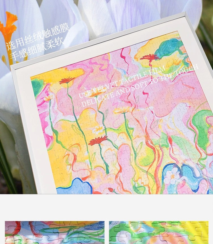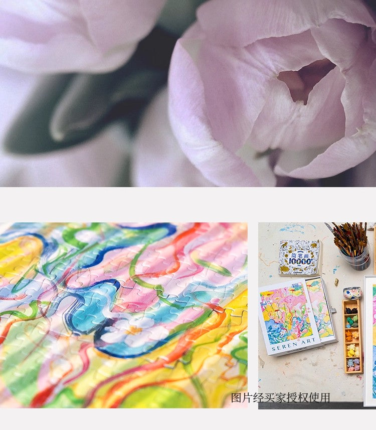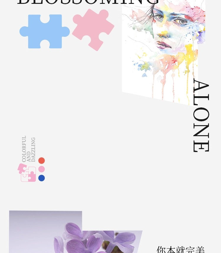 Blossom Alone is a gentle abstract artwork inspired by growth, movement, and renewal. Flowing lines and soft pastel colors intertwine with delicate floral forms, creating a sense of life quietly unfolding. The composition feels light, calm, and uplifting—like flowers slowly reaching toward the sun. This puzzle is perfect for relaxed, mindful moments and for those who enjoy art that feels fresh, hopeful, and serene.