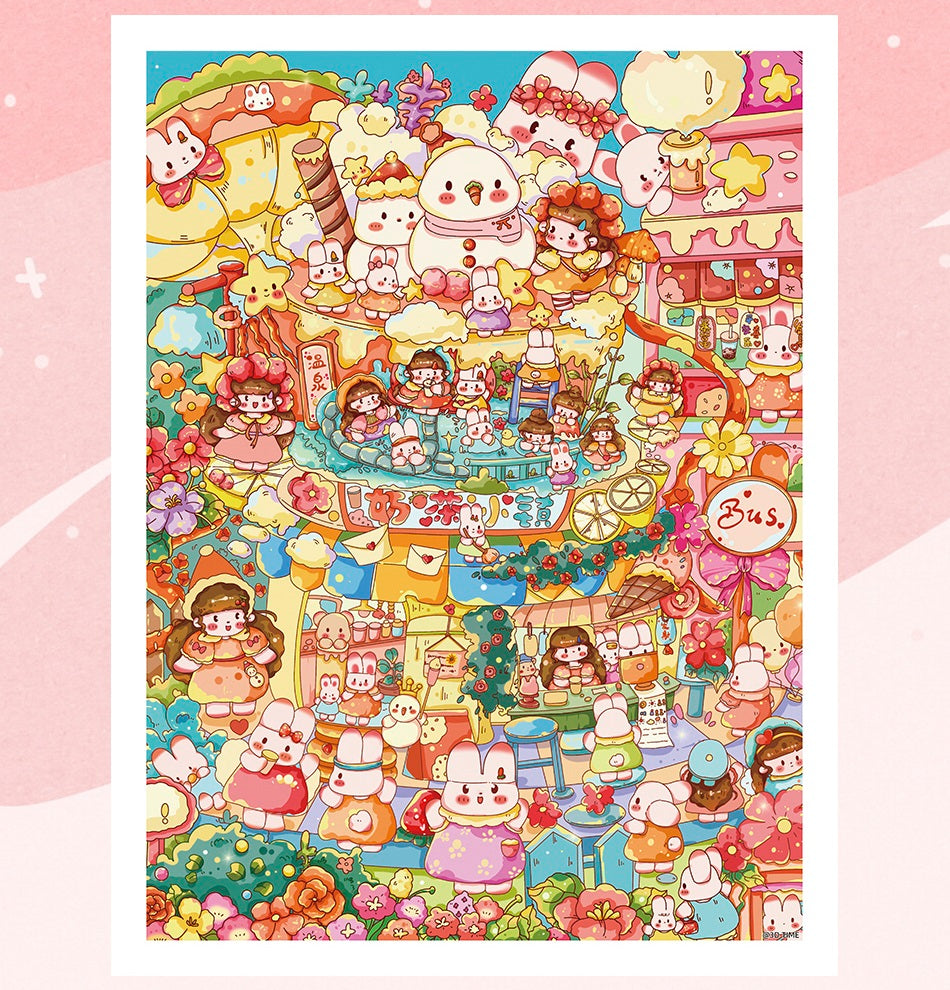 "Milk Tea Town" brings to life a cozy, charming town where the delightful aroma of freshly brewed milk tea fills the air. Piece by piece, you’ll uncover a scene of bustling streets, quaint tea shops, and vibrant community life, all centered around the love of this sweet, comforting beverage. This puzzle captures the warmth and joy of a town where friends gather, and every corner invites you to relax and enjoy a peaceful moment. Perfect for those who appreciate cozy atmospheres and the simple pleasures of life, "Milk Tea Town" offers a heartwarming experience.