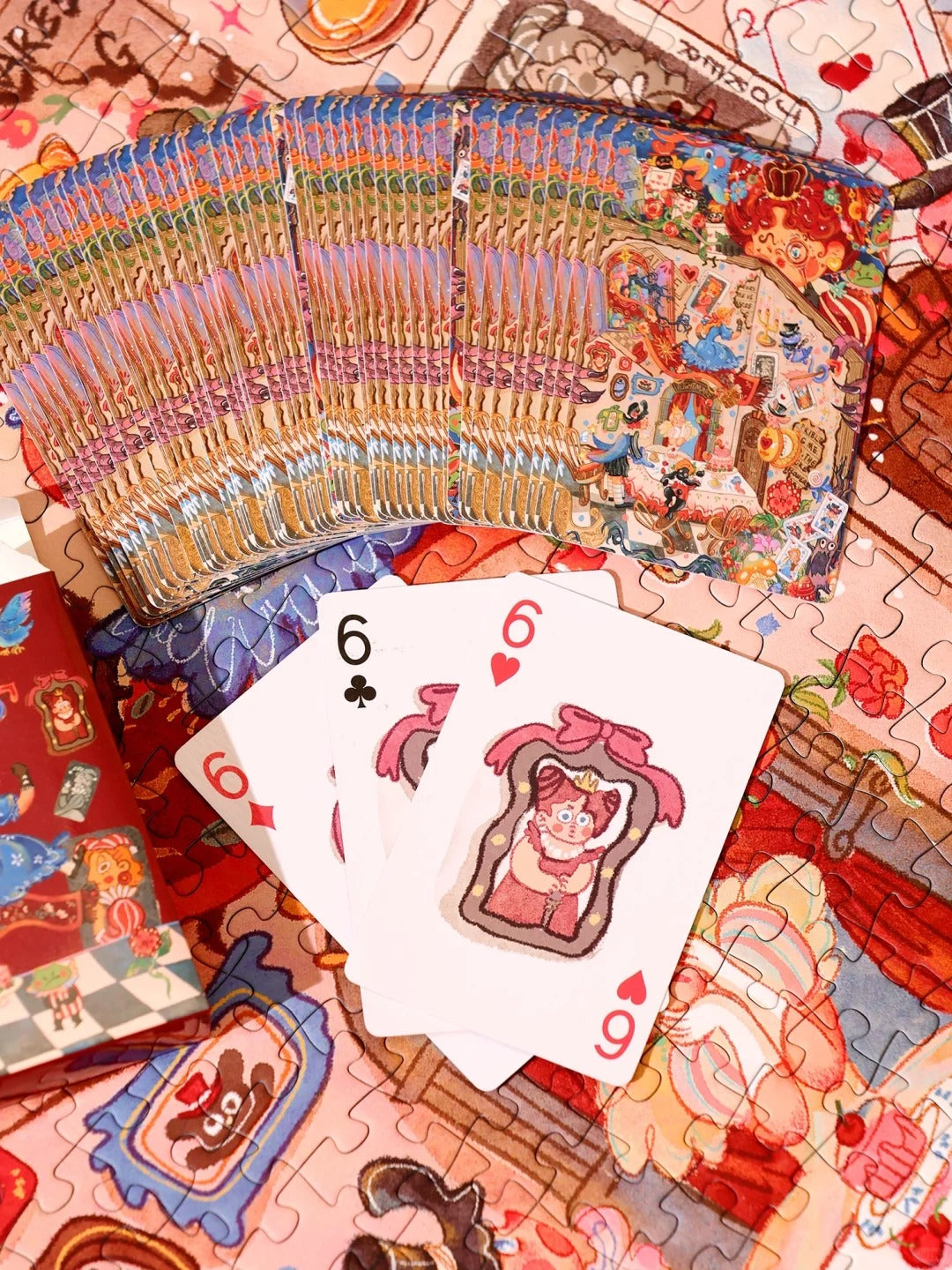 Step into a fantastical Alice in Wonderland-themed world, where a playful poker card comes to life with swirling colors and whimsical characters. From a mischievous Cheshire Cat and dancing playing cards to a curious Alice tumbling through a dreamy scene, every corner overflows with magic and surprises. Twisting staircases, enchanted tea parties, and lively creatures create a surreal, joyful chaos that pulls you deeper into the wonderland adventure.