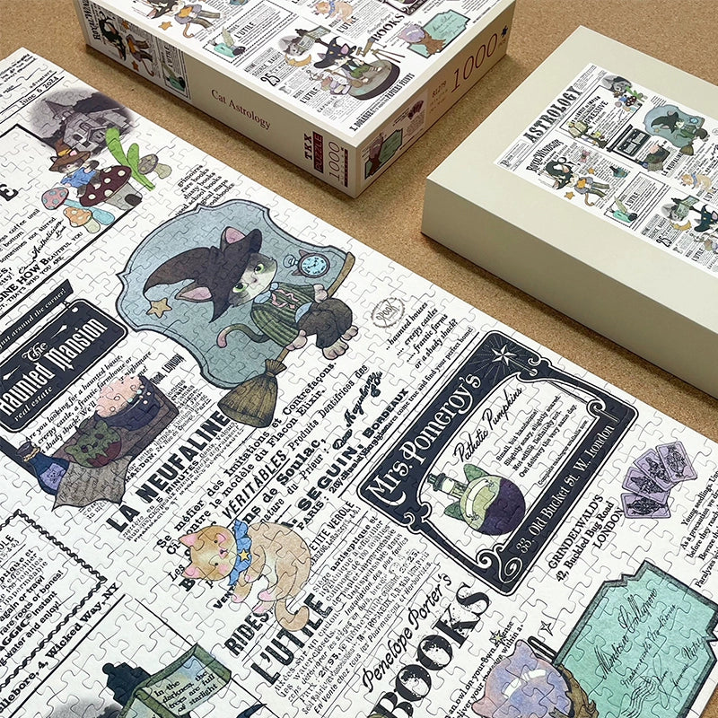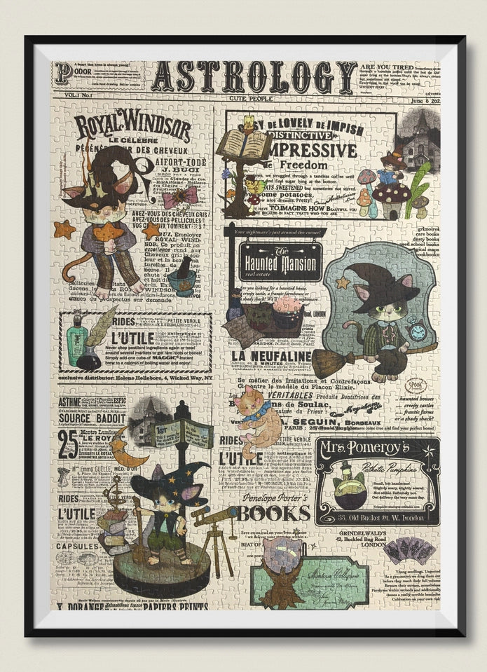 "Cat Astrology" puzzle combines the mystery of the stars with the charm of cats. Piece by piece, uncover a whimsical scene where curious felines explore celestial charts, constellations, and mystical symbols. Perfect for those who love astrology, cats, and a touch of cosmic magic.