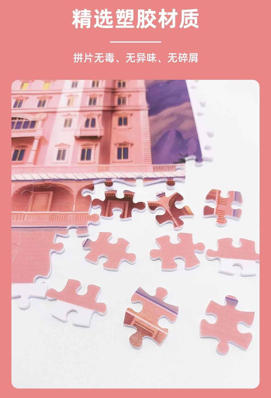 "Pink Mountain Grand Hotel" invites you into a world of elegance and tranquility. Piece by piece, you’ll reveal a stunning scene of a grand hotel set against the backdrop of majestic pink-hued mountains. The atmosphere is serene and luxurious, with delicate details that evoke a sense of calm and sophistication. This puzzle is perfect for those who appreciate scenic beauty, upscale settings, and a touch of whimsical charm. "Pink Mountain Grand Hotel" offers a relaxing and immersive experience, transporting you to a peaceful, idyllic retreat.